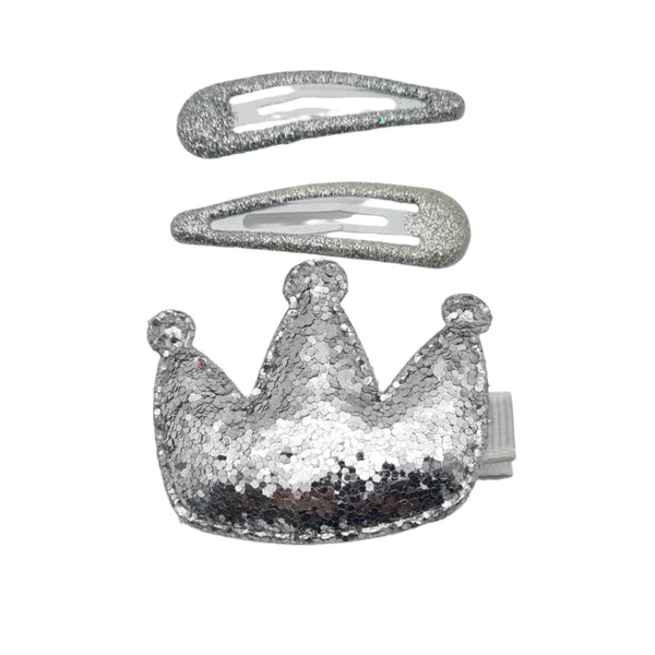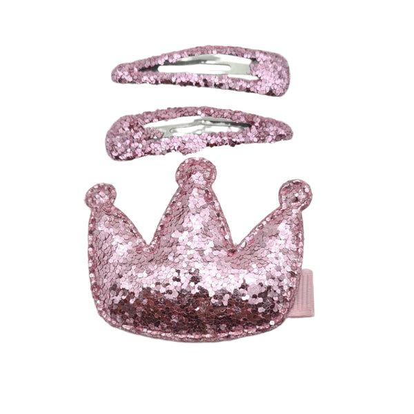 Παιδικά μανταλάκια για τα μαλλιά με σχέδιο κορώνα σε συνδυασμό με δύο κλιπς ίδιου χρώματος. Το μανταλάκι αποτελείται από στρας και είναι πλαστικοποιημένο ώστε να γυαλίζει αλλά και να αντέχει στο χρόνο. Διαθέτουν σταθερό και δυνατό κράτημα, ενώ το μανταλάκι είναι ντυμένο για να μην δημιουργείται πόνος στο κεφαλάκι του παιδιού. Χαρίστε στα μικρά σας κορίτσια στυλ και λάμψη στα μαλλιά τους, με τα χρώματα και τα σχέδια που αγαπάνε από το πρωί έως το βράδυ