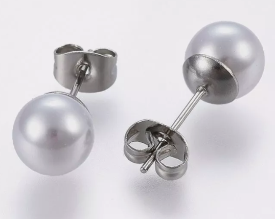 Ατσάλινο σκουλαρίκι με πέρλες 6mm