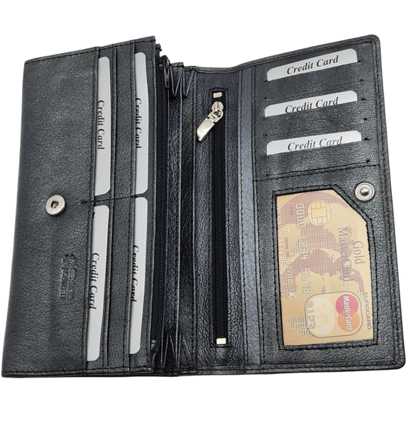 100% Genuine Fine cowleather wallet. 12 credit card slots. Four note compartments. One zip case.