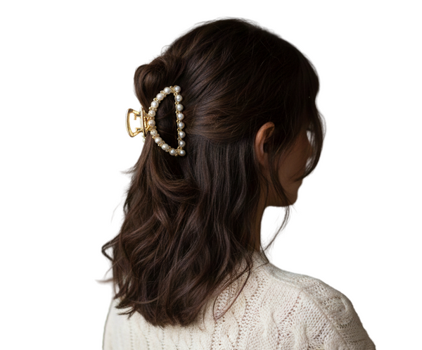 Add instant glamour to any hairstyle with this luxurious pearl claw clip. Perfectly sized for half-up styles, messy buns, or securing thick hair all day, it combines timeless elegance with serious hold.