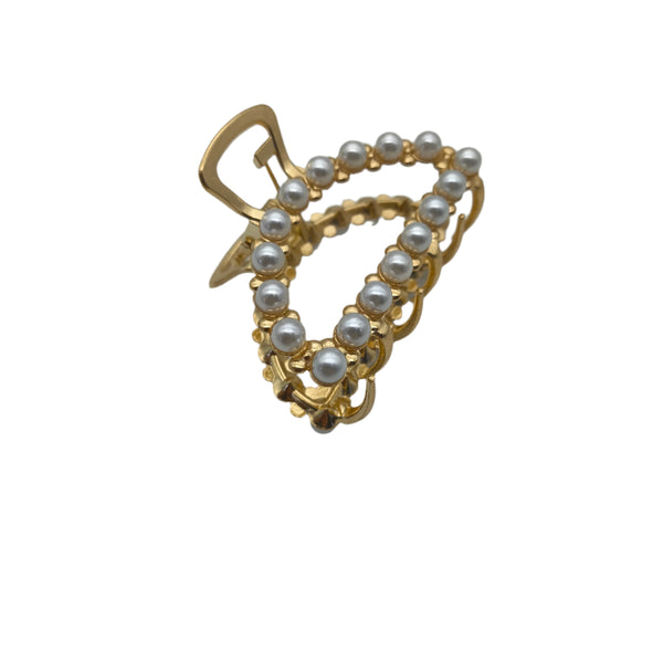 Pearl-Embellished Metal Claw Clip – Gold & Silver