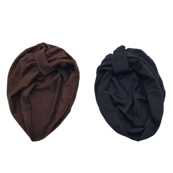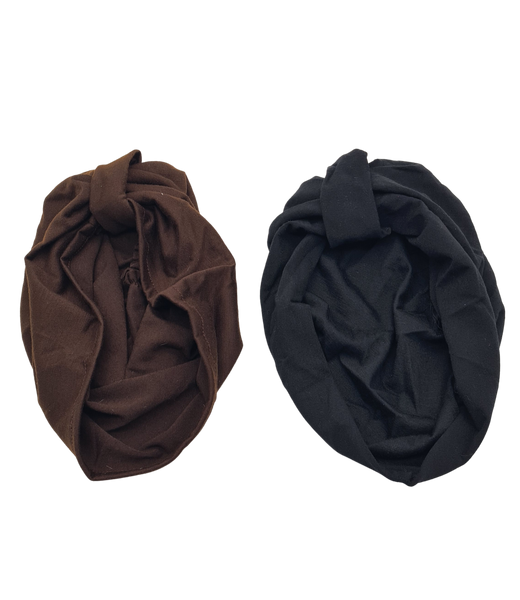 ๐ Luxe Knot-Front Turban Duo โ Classic Black & Rich Chocolate Brown! ๐