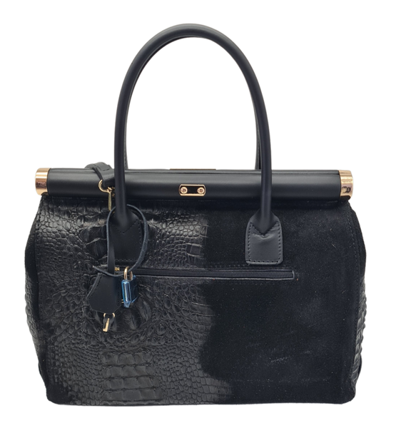 Elevate your everyday carry with this sophisticated black textured handbag, where refined craftsmanship meets timeless elegance. The tactile surface adds visual depth and dimension, while gleaming gold-tone hardware provides a luxurious finishing touch. Designed for the discerning professional, this versatile piece transitions seamlessly from office to evening, offering both style and practical functionality. The structured silhouette ensures durability, making it an investment piece that complements any wardrobe.