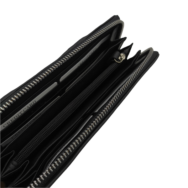 Womens Leather wallet with 12 card slots, 1 coin, and 2 sides for cash notes.